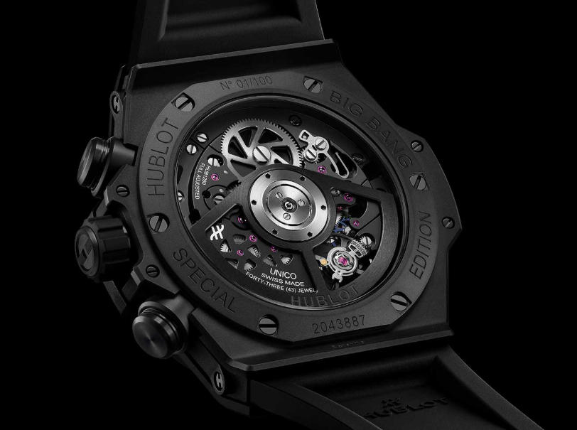 Technically, the Calavera All Black is yet another example of the “Art of Fusion,” Hublot’s mantra. The HUB1280 Unico caliber, an in-house flyback chronograph, features 354 components and 43 jewels, beating at 4 Hz (28,800 vibrations per hour) and offering a 72-hour power reserve. Its column wheel, double clutches for a smooth start, and silicon escapement ensure reliable accuracy.